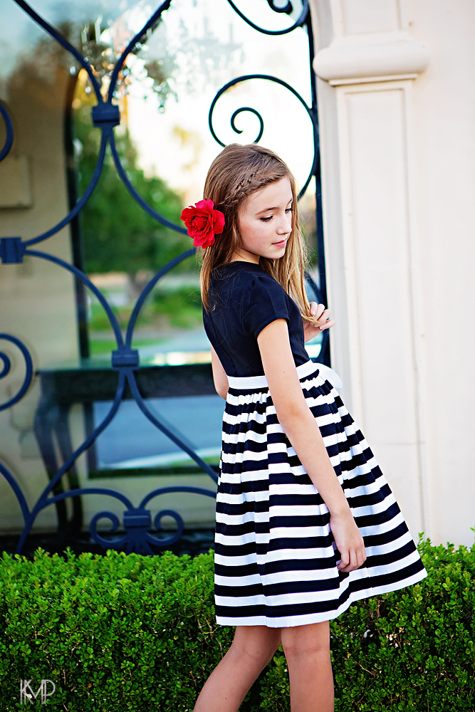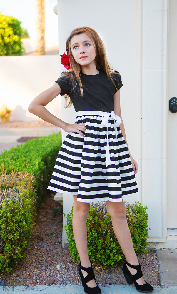 Who doesn't love stripes? Was there ever a time that stripes weren't popular? I've always been a fan of horizontal stripes - particularly black and white ones. So when Faith, the talent behind FaithWorks4U, sent me this striped dress, I was immediately in love. The higher waist, retro, 1960's style dress was meticulously made and comfortable too (according to Brielle). She added this dress just in time for the holidays and it's available in sizes 1t through girls size 12. She also ships world wide! This dress is perfect for Holiday Photos, Holiday Dinners, Parties, or most other occasions. And Faith is amazing to work with, she and I have worked together since Brielle was a toddler. If you have any questions, she's also on Facebook. Like her page for updates, new design releases, and special promotions.