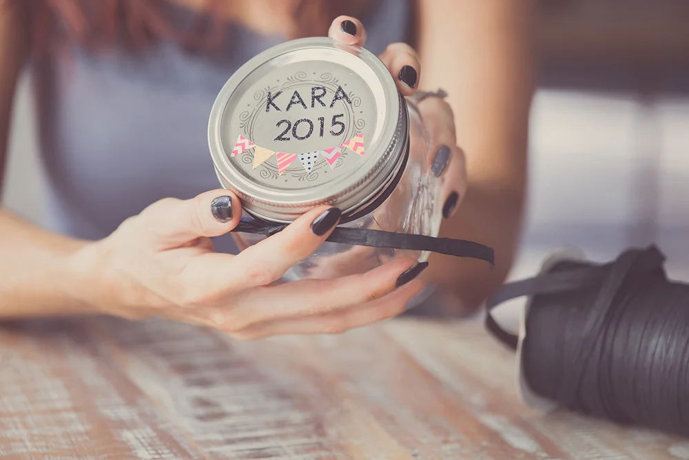 It' a new year! A new year means a fresh start and new ideas and memories to be made. Our family does't really do 'New Year's Resolutions'. So we've started to do 'Rememberlution Jars'. What are they? I found the idea on Pinterest here and thought it was a cool thing to start and my family was excited about it too. Jeff was nice enough to play along and I think he enjoyed making his jar too. :) So it's a jar that you start at the beginning of the year and you put memories, nice thoughts, accomplishments, and anything you want to remember about that year that makes you smile. You place little notes in the jar throughout the year and on January 1st the next year (or on New Year's Eve) you open your jar and share the memories. How fun is that? We've put little cut pieces of paper on our bulletin board that we can rip off and write for easy access. We'll remind each other periodically to put something special in the jars. We all wrote a note after making them. Pretty fun!
