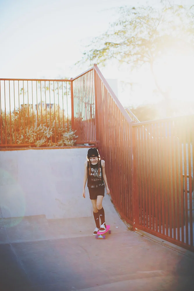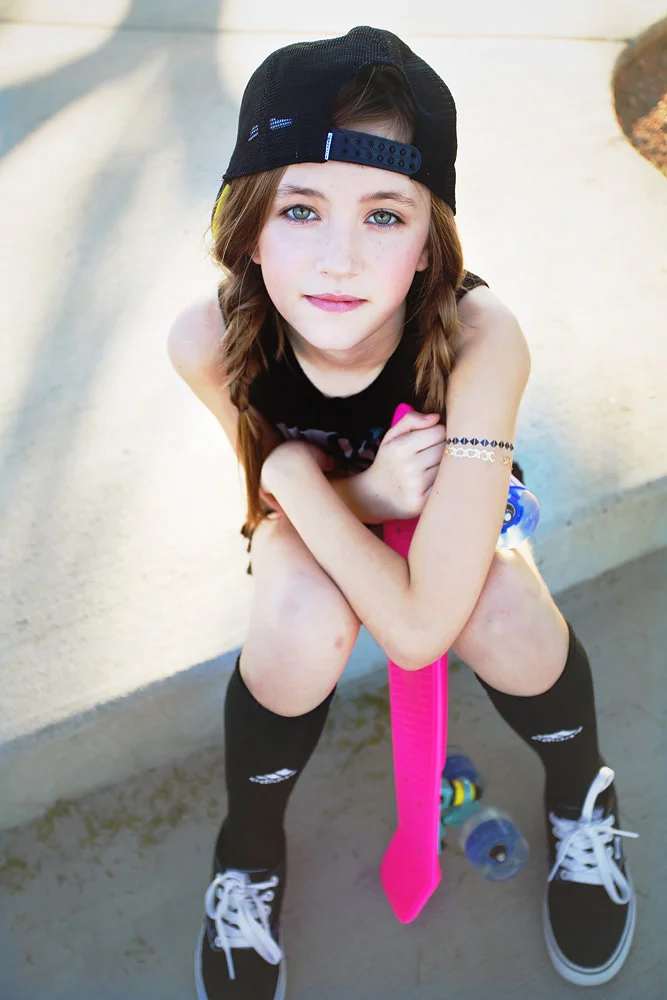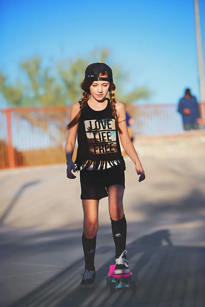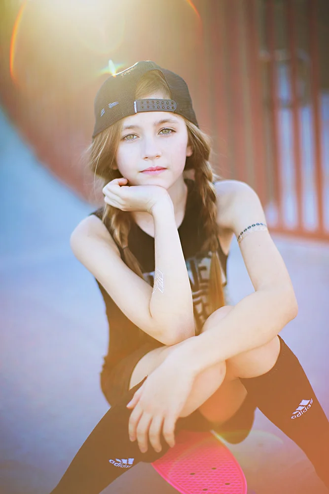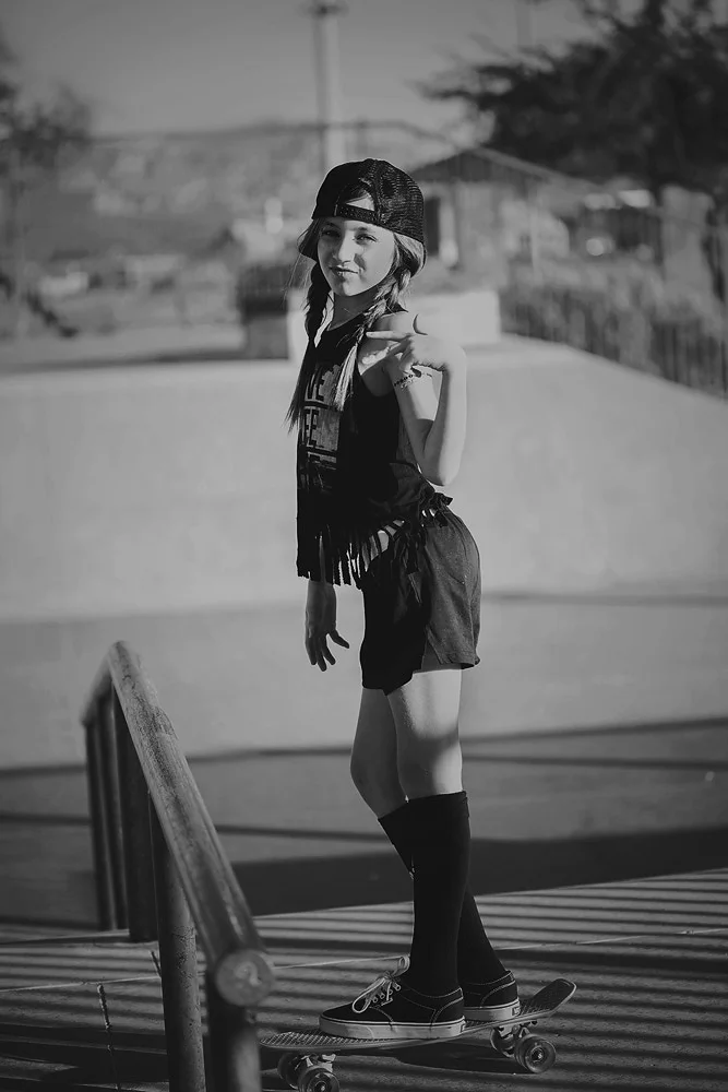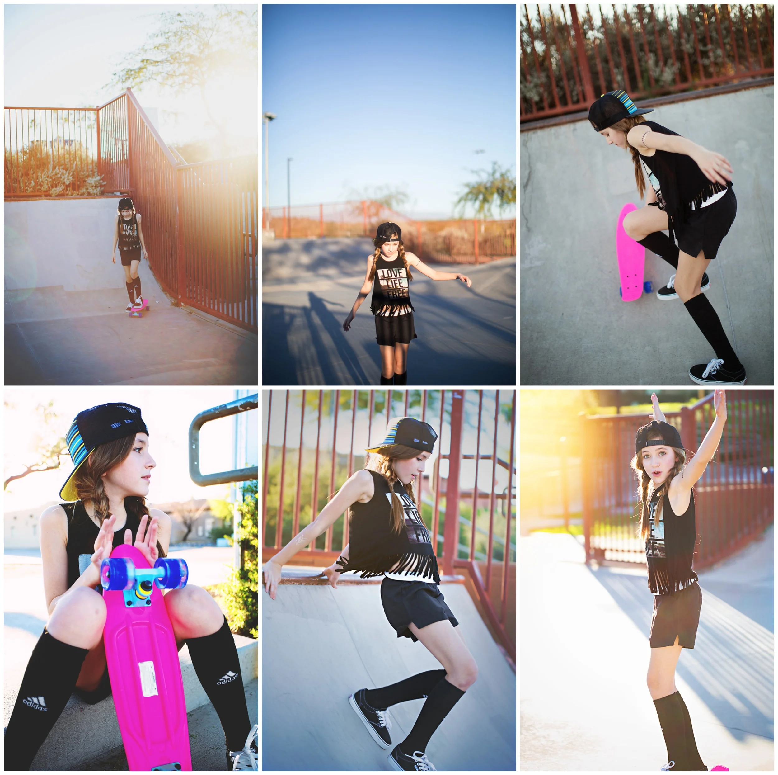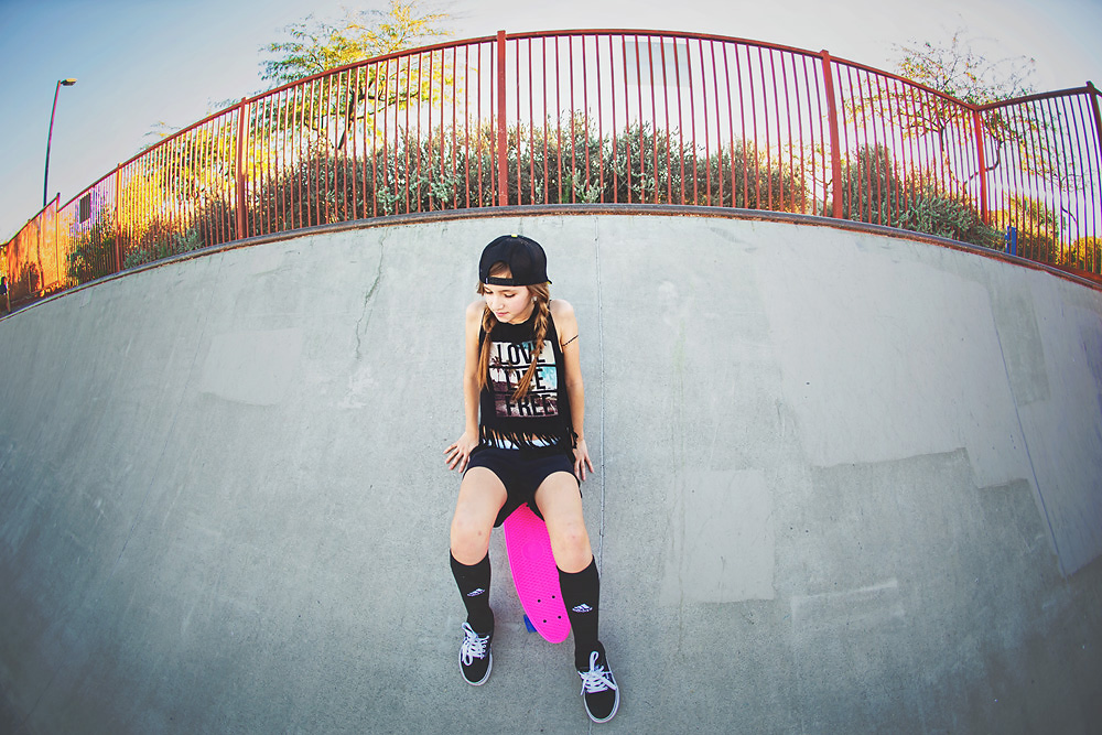 I photographed Brielle at the skate park a few months ago. She LOVES it so we took advantage before the summer heat kept us away. Now looking back, we're excited to go out again once it's the cement isn't scalding hot. Brielle DOES wear a helmet, here she was just coasting not doing any tricks or anything daring (no hate mail please - we are safety conscience). Anyway, it was fun to see her excited and slowly interact with some of the older boys who were helping her there. Skateboarding isn't just fun for boys. ;-)