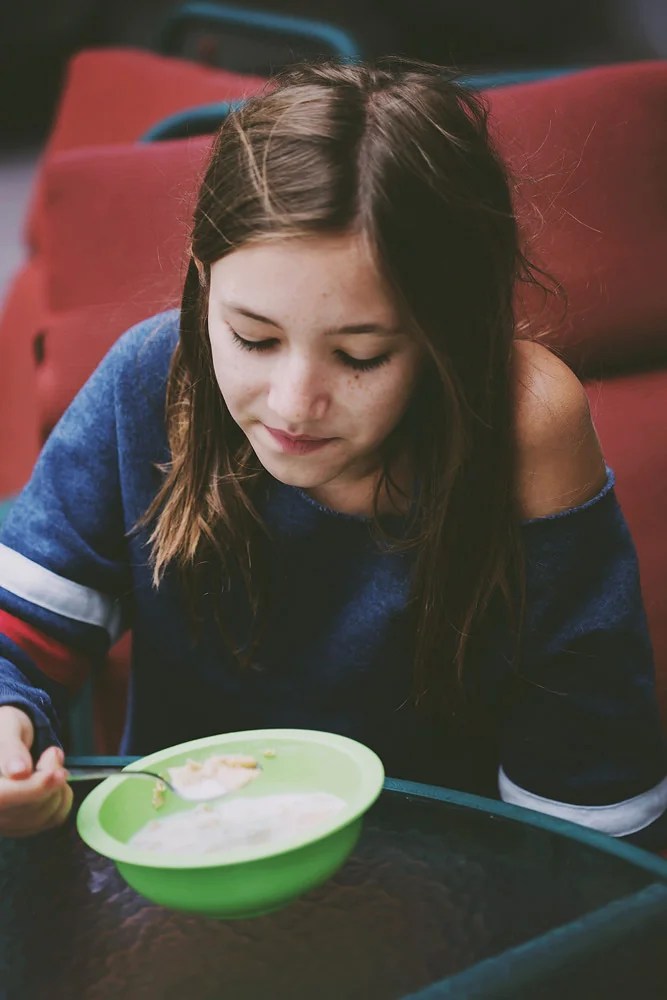 We moved slowly the next day. Puffy eyed morning faced girl slowly eating breakfast on the back porch.