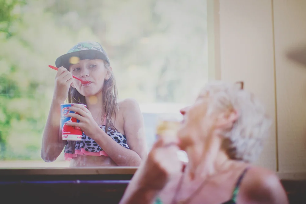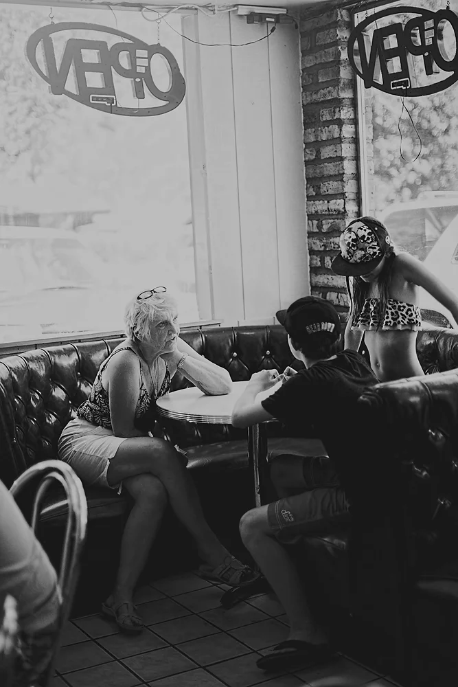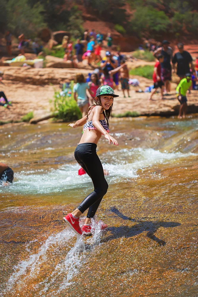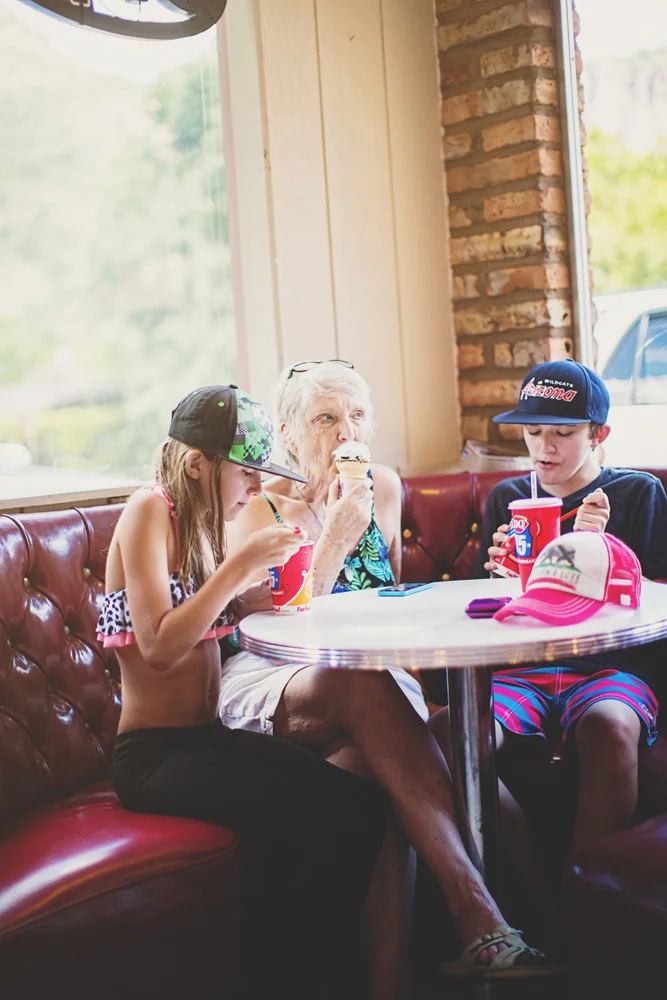 So we did! The kids wanted Grandma to see Sedona so we took her to our favorite place there! Grandma had never seen landscape like Sedona's red rocks in person and she showed so much grit climbing the slippery rocks and following the kids up and down the creek as they excitedly showed her everything! No trip is ever complete without a stop for ice-cream. Perfect way to cool down air-conditioned place seated at a corner booth.